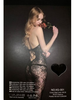 Body Stocking Elegant Due Pezzi è una catsuit sexy in pizzo con bustier in pizzo floreale nero.
