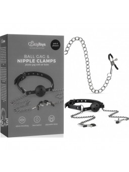 Morso Gagball Con Pinze Catena Capezzoli,le pinze tirano i capezzoli è un costrittivo bodage per donna e uomo