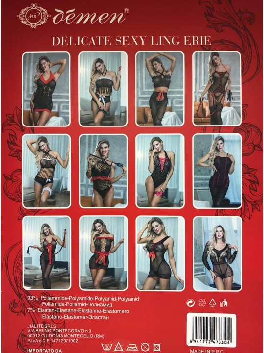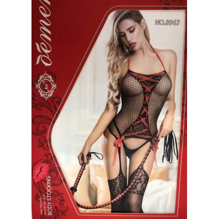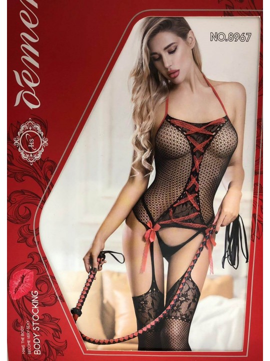 Body Stocking Sensual Black questa catsuit è in un unico pezzo che però, visivamente, sembra composta da due pezzi: sensuali autoreggenti e un delizioso corpetto,decorata da provocanti disegni intrecciati a x e rifinita da sotto con ricami floreali.