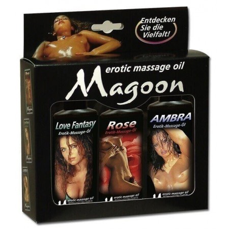 Ecco a voi Magoon erotic massage oil, una confezione di tre differenti oli!Assortiti da 100 ml