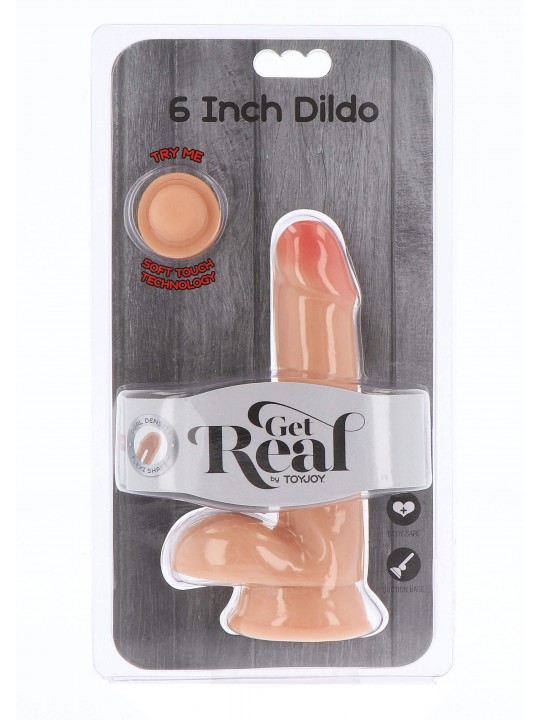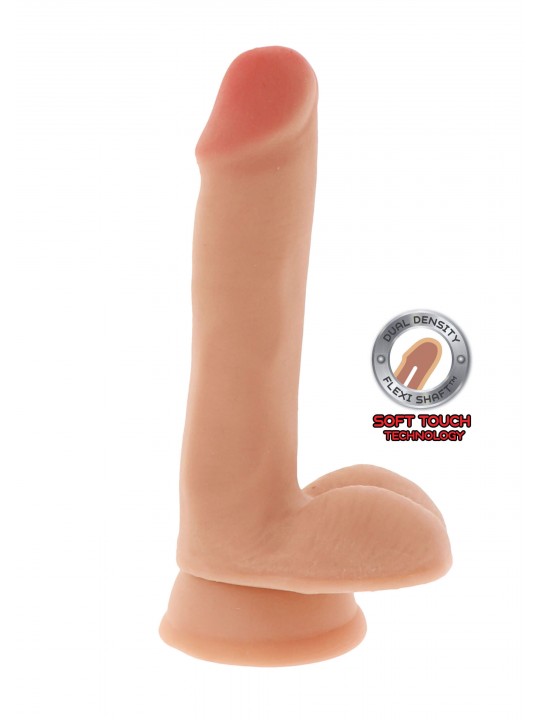 Dildo Fallo Dual Density Dildo 6 Inch Balls color carne con ventosa e testicoli.
