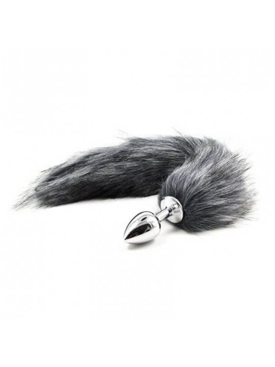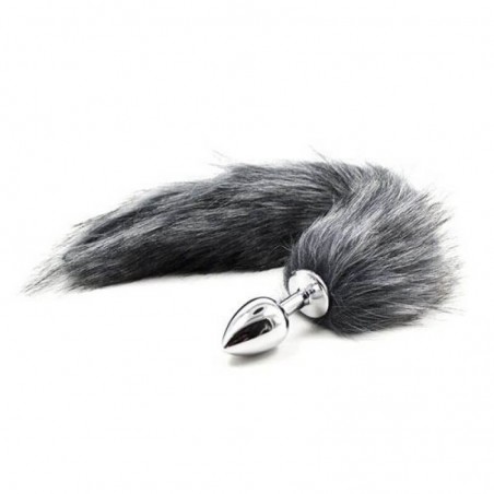Plug Anale con Coda Long Fox Tail in acciaio ed eco-pelliccia con coda lunga di color grigio sfumato