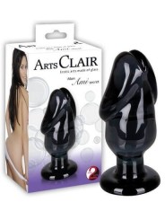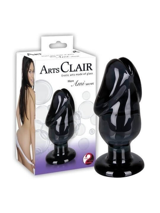 Plug-anale a forma di glande in vetro nero con una base. Può essere riscaldato o raffreddato in base all'esigenza. Inodore, anti-allergico e facile da pulire.