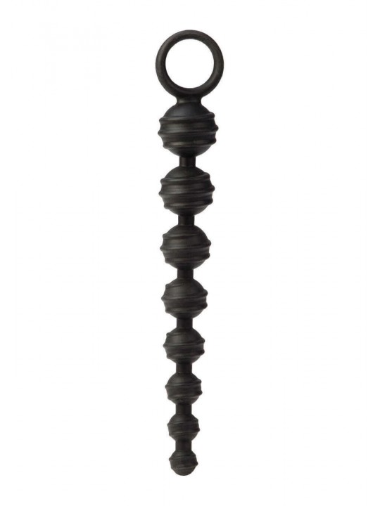 Sotto molti aspetti le catene di sfere anali rappresentano un arricchimento della vita sessuale. Da soli o come preliminari durante l?eccitante entrata e uscita stupendo per LEI e per LUI. Se la catena è inserita nell?ano durante l?amplesso, quando lui penetra può addirittura sentire le singole sfere. Se la catena viene estratta rapidamente poco prima dell?orgasmo, lei può vivere l?apice del piacere come non lo mai mai vissuto prima! Stringa di sfere scanalate nera, flessibile con apertura. Ca. 32,5 cm di lunghezza, Ø 2-4,5 cm. Materiale: silicone.