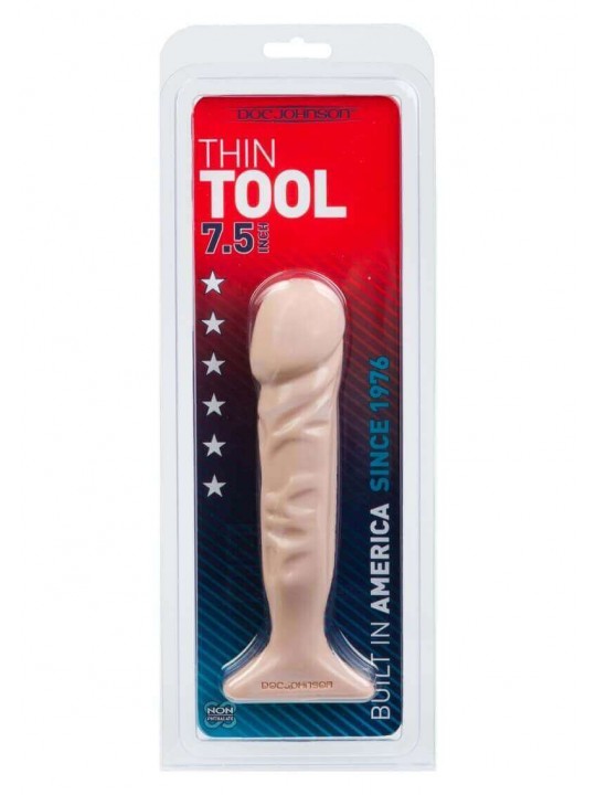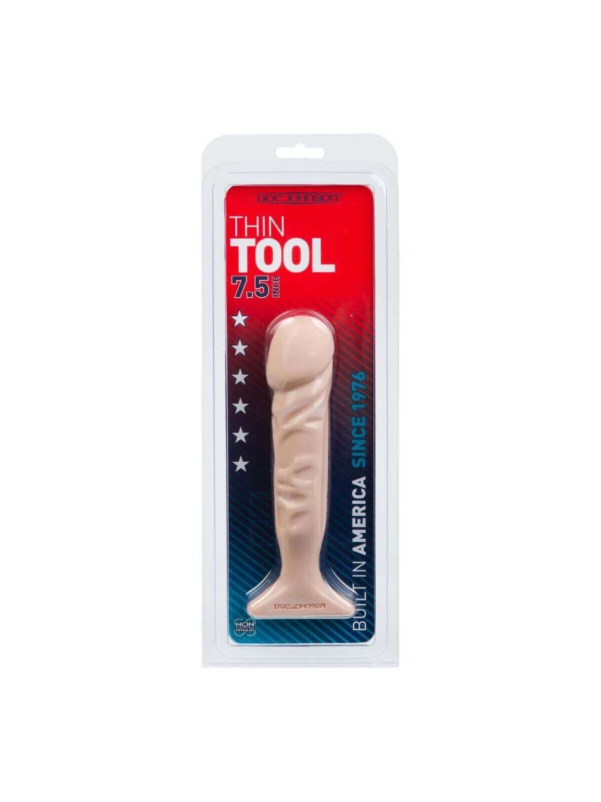 Dildo a forma di pene con cappella pronunciata e posto su una base a ventosa resistente.
