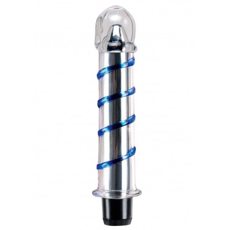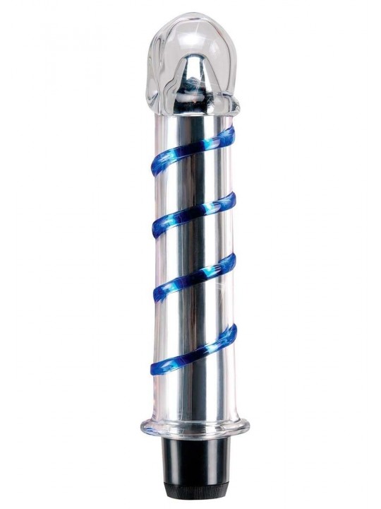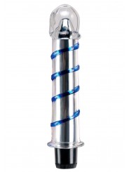 Vibratore in vetro con una linea che avvolge tutta l'asta per aumentare la stimolazione della vagina.