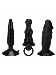 Godetevi questo esclusivo trio in tutte le sue varianti un set composto da 2 falli plug anali e un vibratore anale con anello di trazione .