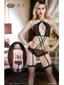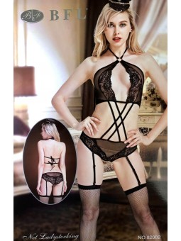 semi intero top e mutanda sexy, con top girocollo e scollatura decoltè accentuata e disegni floreali, mutanda in rete trasparente per ammirare le parti intime e stimolare l'eccitazione del partner