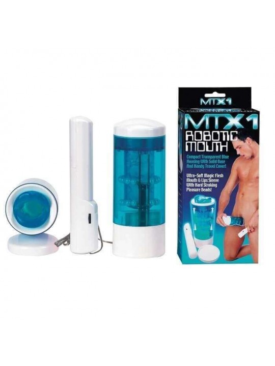 Incredibile masturbatore Robotic Mouth MTX1! A forma di bocca con cavità del piacere a rilievi nella quale il vostro pene viene avvolto. Se si fa avviare il motore vibrante le perle interne si muovono su e già ed il piacere è assicurato!