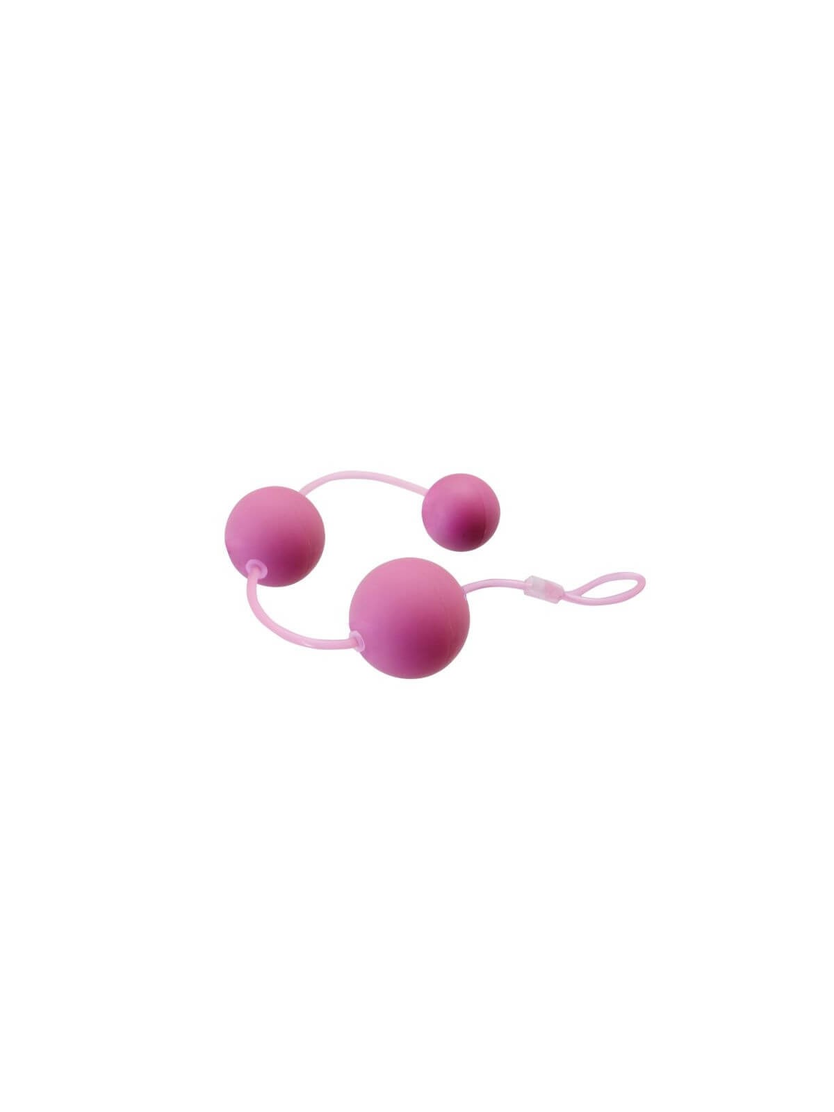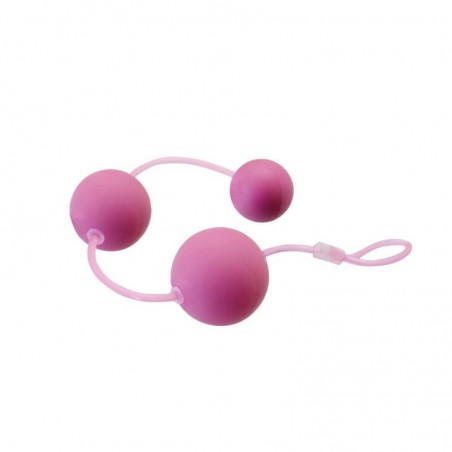Trio di sfere del piacere Velvet Pink Balls! All'interno delle sfere palline vibranti rotanti garantiscono eccitazioni stimolanti e massaggianti! L'applicazione delle sfere del piacere può anche rinforzare la muscolatura vaginale e regalarvi orgasmi da urlo! Facilmente inseribili e rimovibili grazie al filo che le collega.