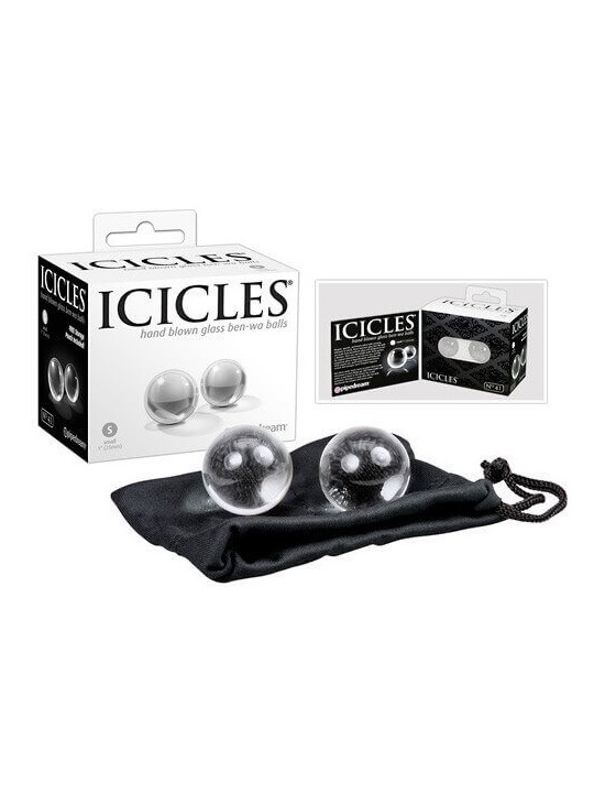 Coppia di palline vaginali Ben-wa Icicles in vetro! Grazie alle loro dimensioni e al loro peso sono ideali per la stimolazione e l'esercizio vaginale! Usandole regolarmente avrete pi orgasmi con un miglior controllo dei muscoli della vagina.