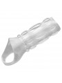 è un'estensione personalizzabile che può essere facilmente modificata e tagliata in punta per una vestibilità perfetta. La guaina ti permette inoltre di lasciare il glande libero in modo da poter sentire ogni sensazione e godere del contatto naturale con il partner. E’ molto flessibile di color trasparente ma ha l'aderenza necessaria per aiutare a durare più a lungo e dispone di un anello per testicoli per ritardare l'eiaculazione. La guaina Deluxe Vibrating Penis Enhancer fa guadagnare il 30% di diametro dando la fiducia necessarie per soddisfare il partner. Dotata di stimolatore clitoride impermeabile a forma di delfino,aiuta la stimolazione del clitoride, Include Batterie, Lubrificante e Toy Cleaner. Misura 13,9 centimetri di lunghezza con diametro esterno di 4,4 cm e interno di 2,5 cm - Pipedream Fantasy X-Tensions