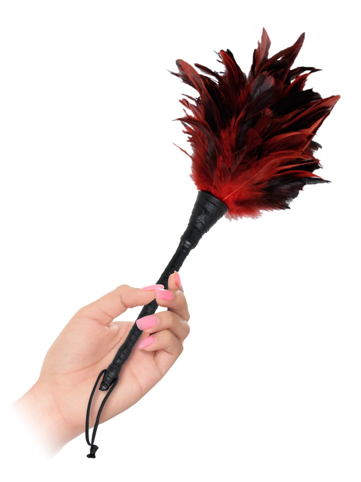 Piuma soffice su asta nera rigida per solleticare il vostro schiavo dopo averlo immobilizzato! Divertimento assicurato.