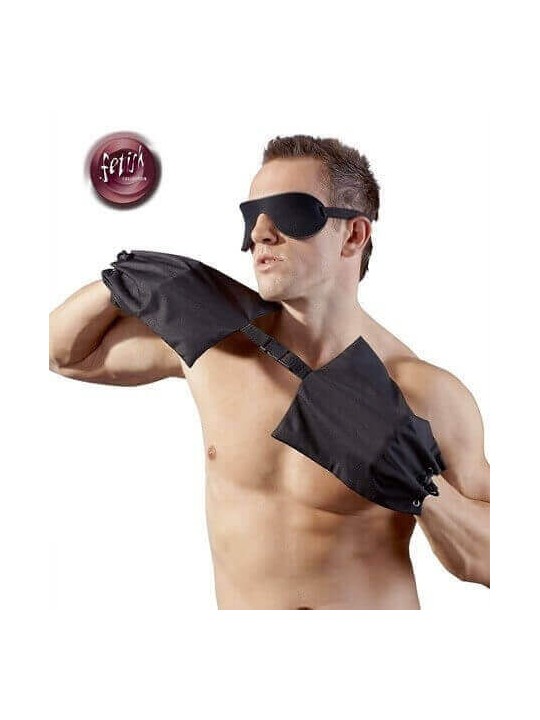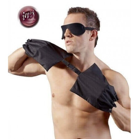 Se volete sottomettere il vostro schiavo iniziate dal bloccargli le mani con questi sacchetti collegati da una cinghia! Il set include anche una maschera per gli occhi!