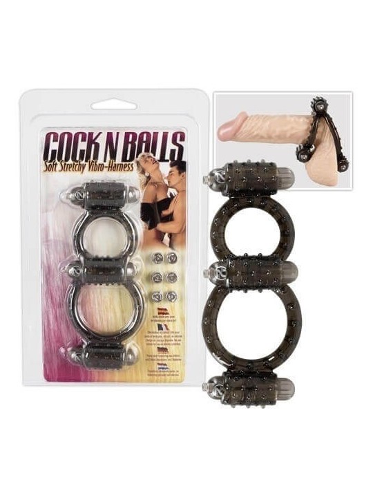 Doppio anello per pene e testicoli! Dotato di rilievi e ben 3 uova vibranti per migliorare la stimolazione sia di lui che di lei! Realizzato in materiale molto espandibile per consentire l'ingresso di tutte le dimensioni.