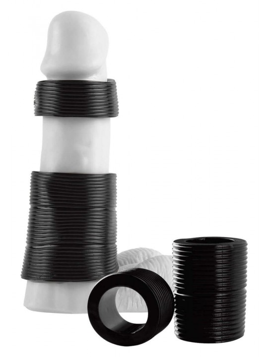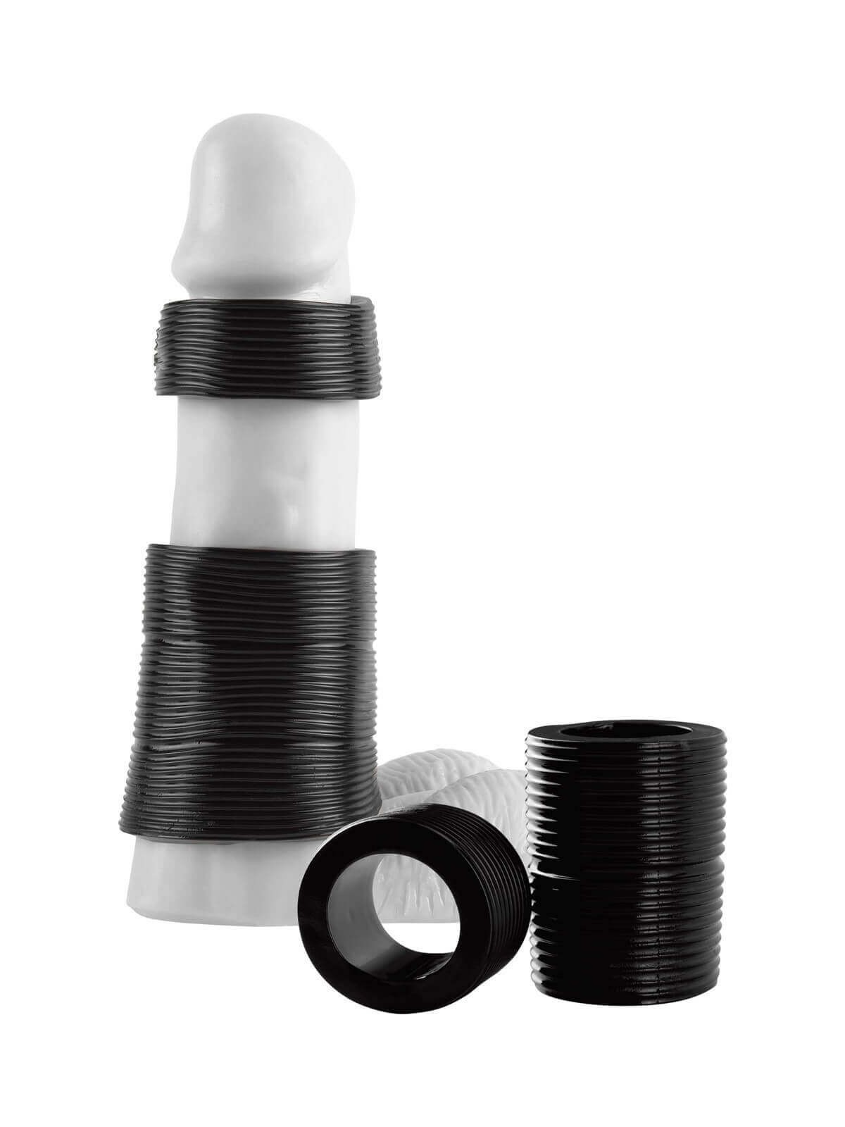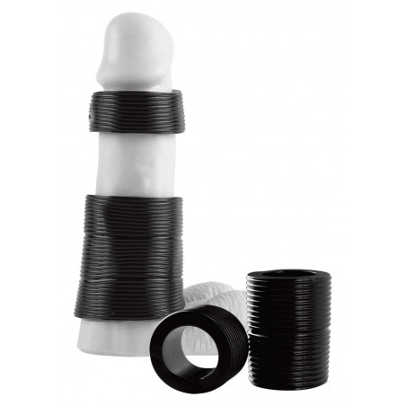 Anello fallico , FX GIRTH GAINER SYSTEM BLACK, permette di aumentare la circonferenze e grazie alle sue striature aumenta il piacere di lei.