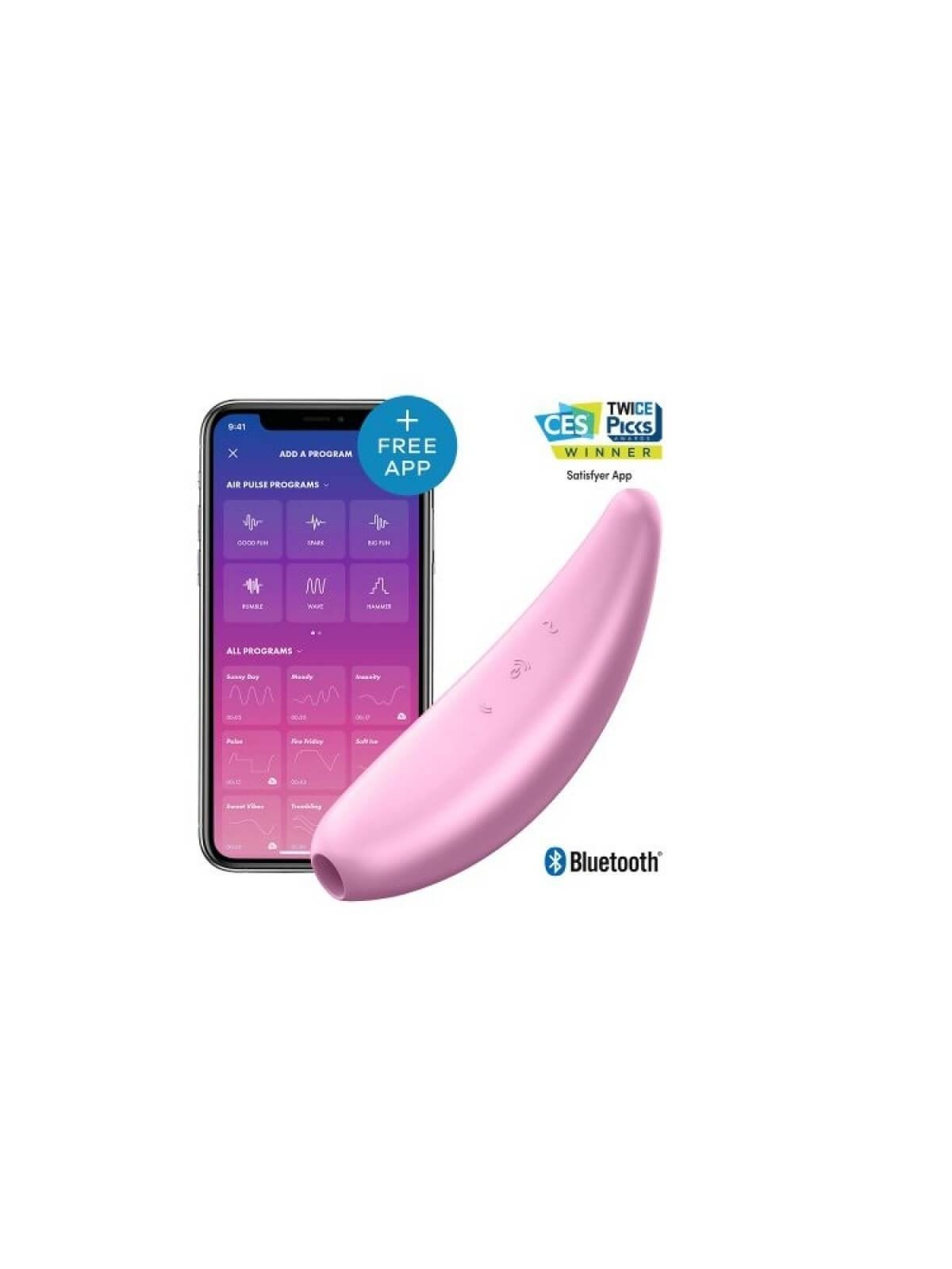 Stimolatore Clitoride Vaginale Succhia Vagina con App Satisfyer Ricaricabile Curvy 3+ azionabile e regolabile tramite l’App completamente gratuita che trovi sia nell’App Store che su Google Play