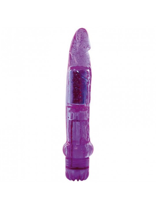 Vibratore Jammy Jelly Dazzly Glitter Purple è un vibratore morbido con una curva leggera nel glande.