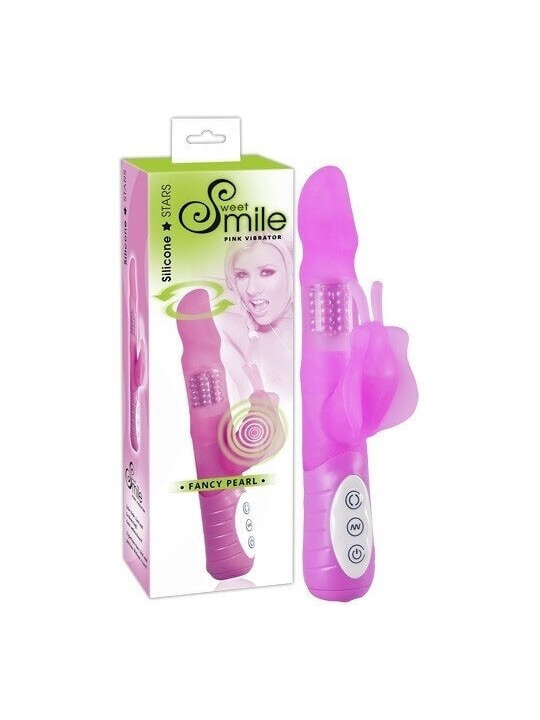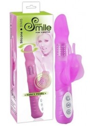 Fantastico vibratore Smile FANCY PEARL! Testa flessibile che viaggia verso i vostri punti più nascosti, clitoride stimolato dal braccio a forma di farfalla e a questo si deve aggiungere la stimolazione delle palline. Funzioni separate regolabili con tasto.