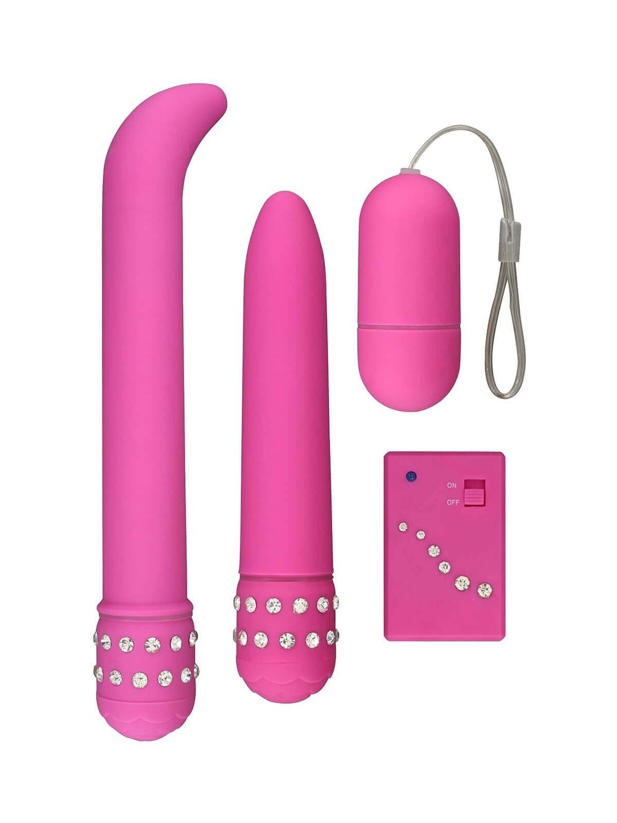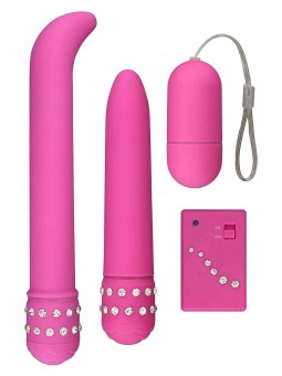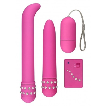 Mini Kit Diamond Pink Giftset per un maxi piacere! Il set contiene una vibrazione di G-Spot con una testa ricurva, un vibratore classico e una pallottola telecomandato.