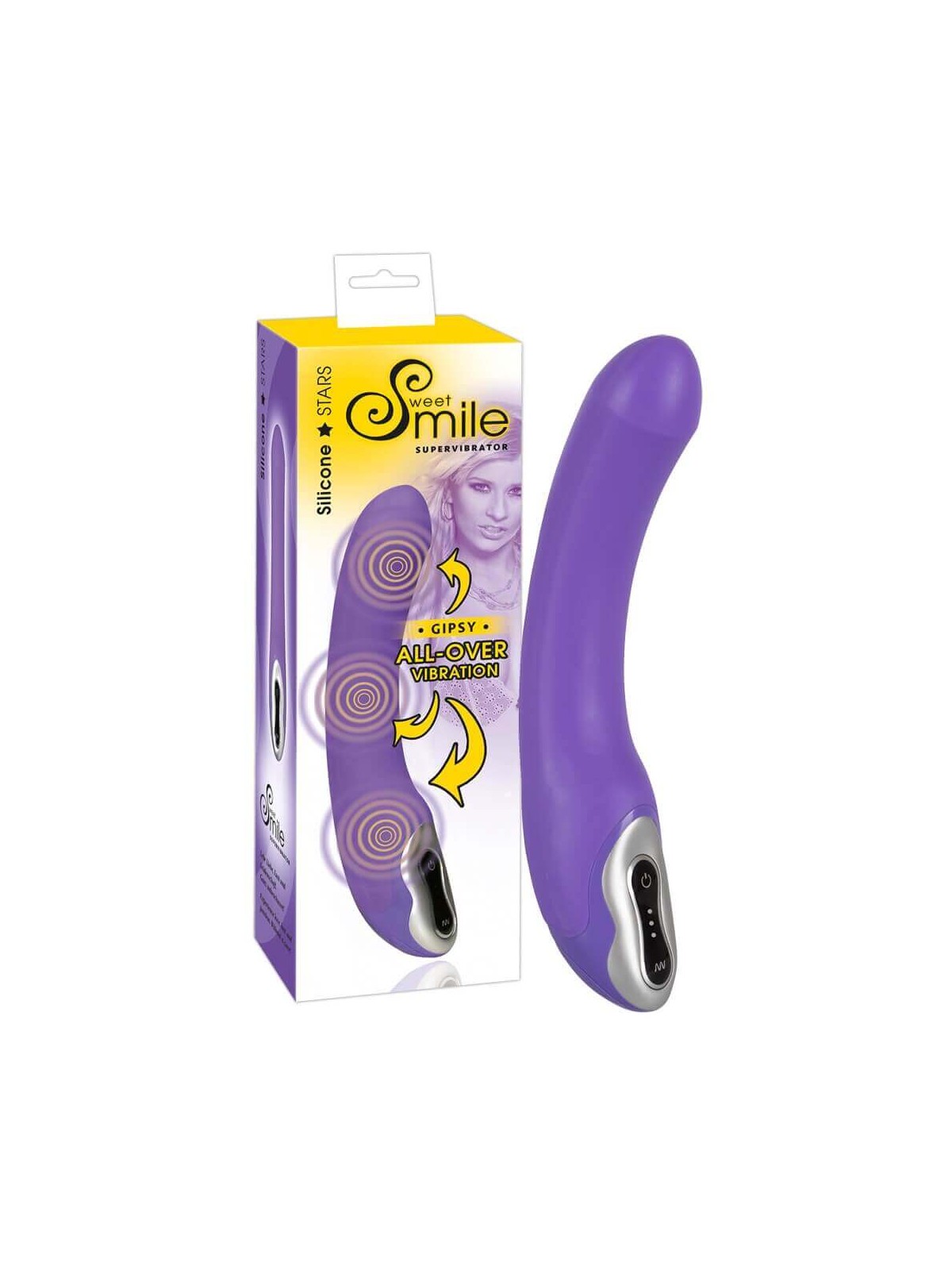Super Vibratore Gipsy della Smile! Vibratore potente con 3 motori silenziosi disposti in basso, al centro e in alto. Dotato di 7 ritmi di vibrazione gestibili mediante il pulsante.